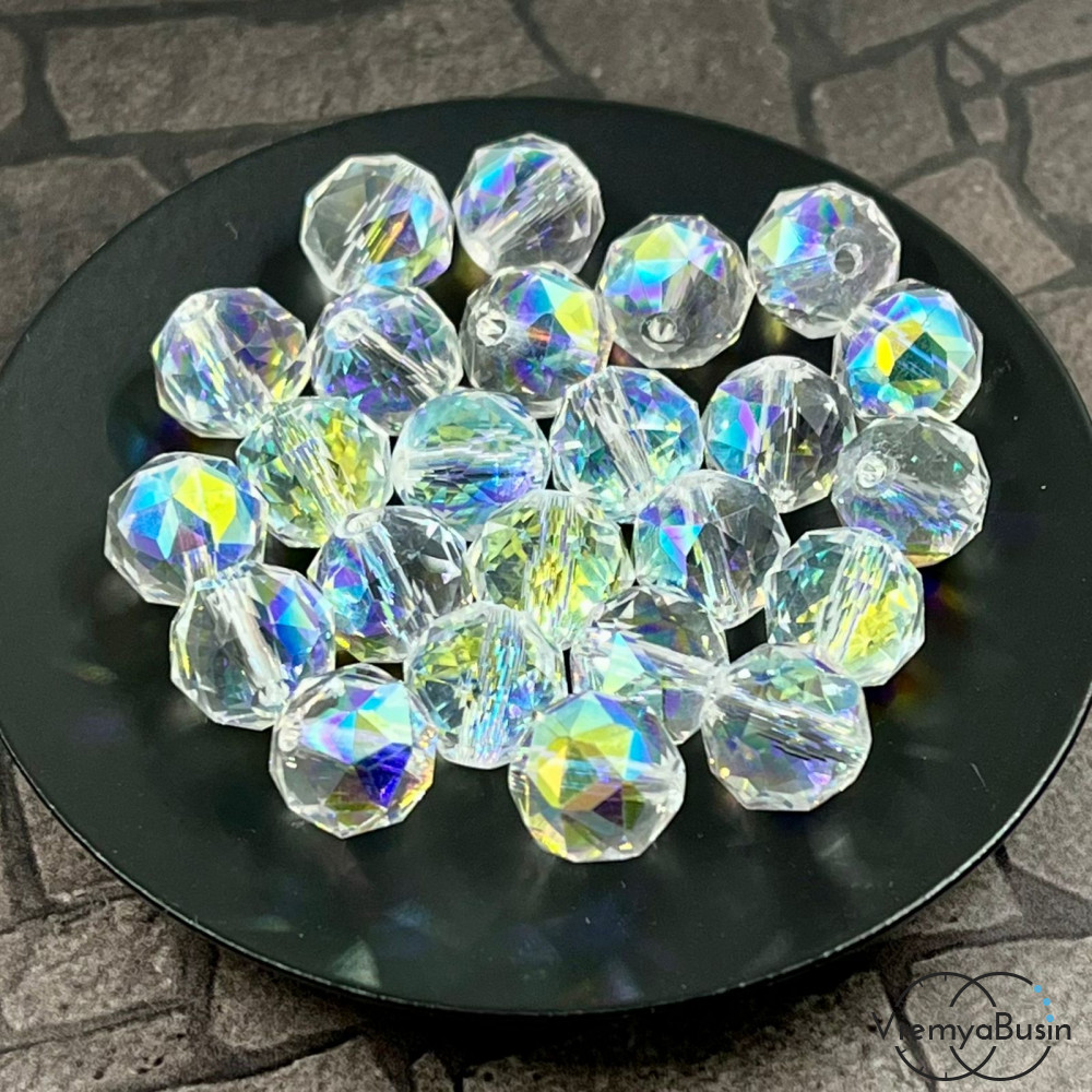 Бусины из граненого хрустального стекла, шарик 10 мм, цв. белый перламутровый (1 шт.)