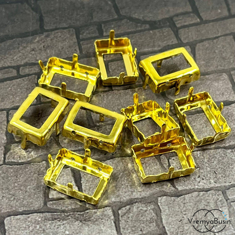 Цапы для страз, прямоугольник 13х18 мм, цв. золото (1 шт.)