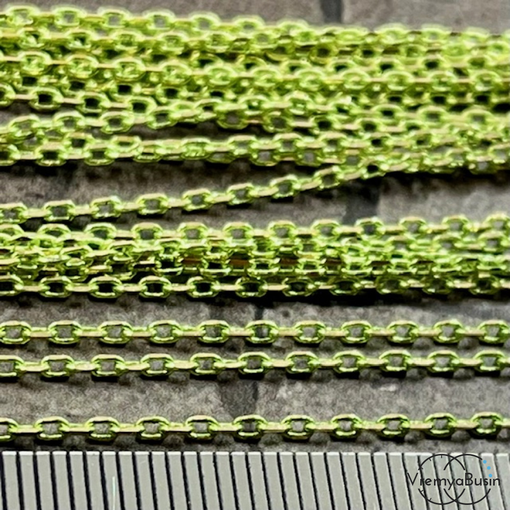 Цепочка металлическая с эмалью, звено ок. 1.5х2 мм, цв. салатовый (1 м.)