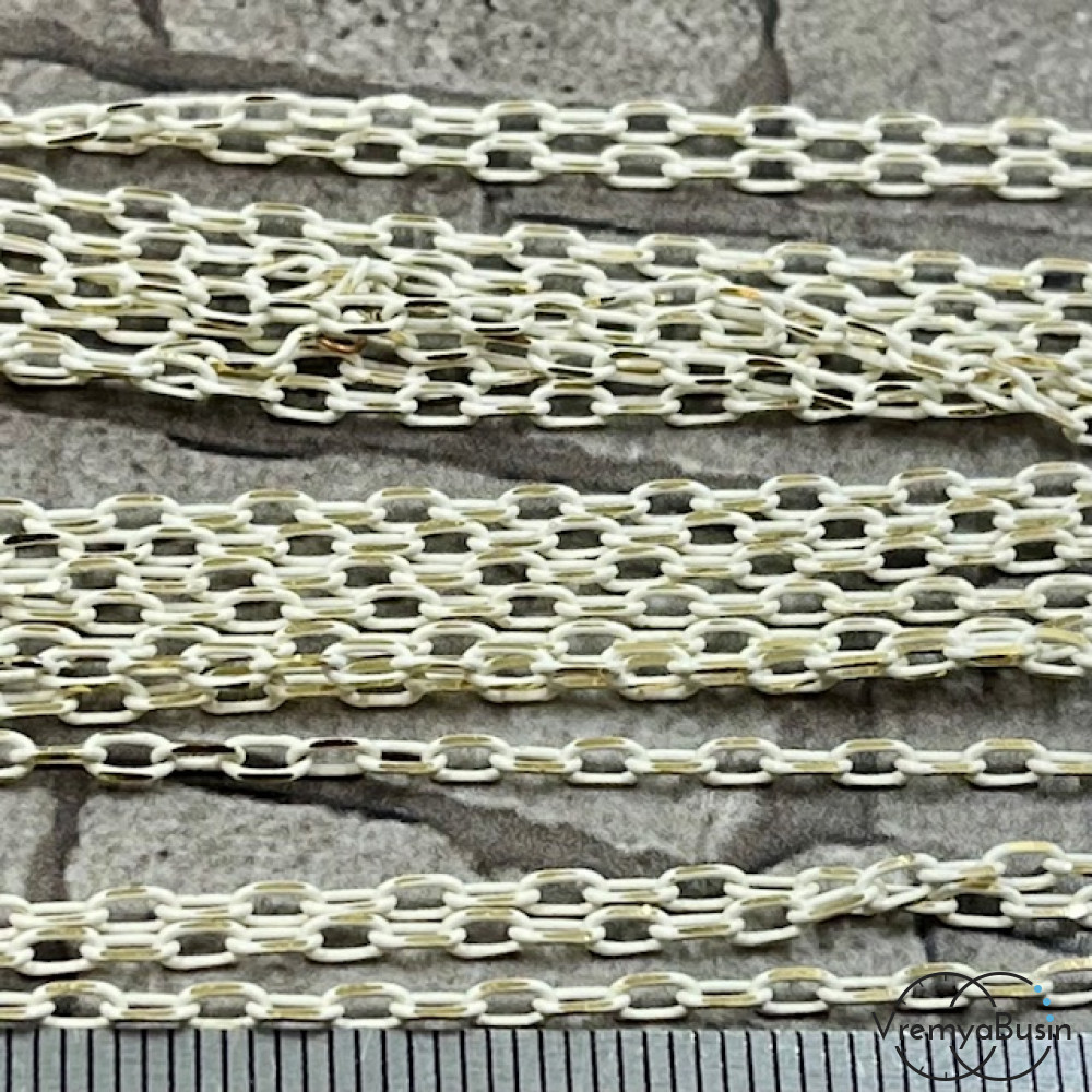 Цепочка металлическая с эмалью, звено ок. 2х4 мм, цв. белый (1 м.)