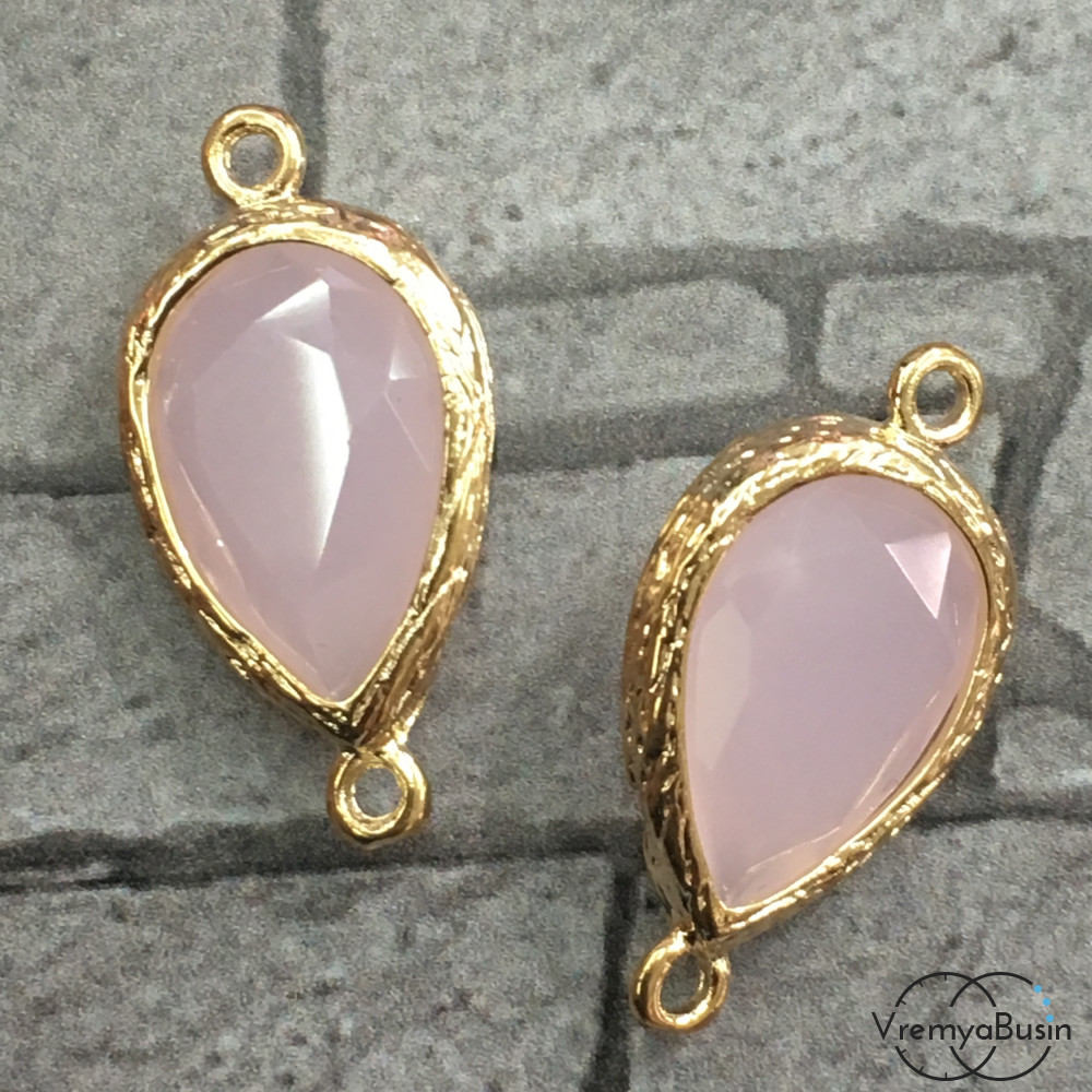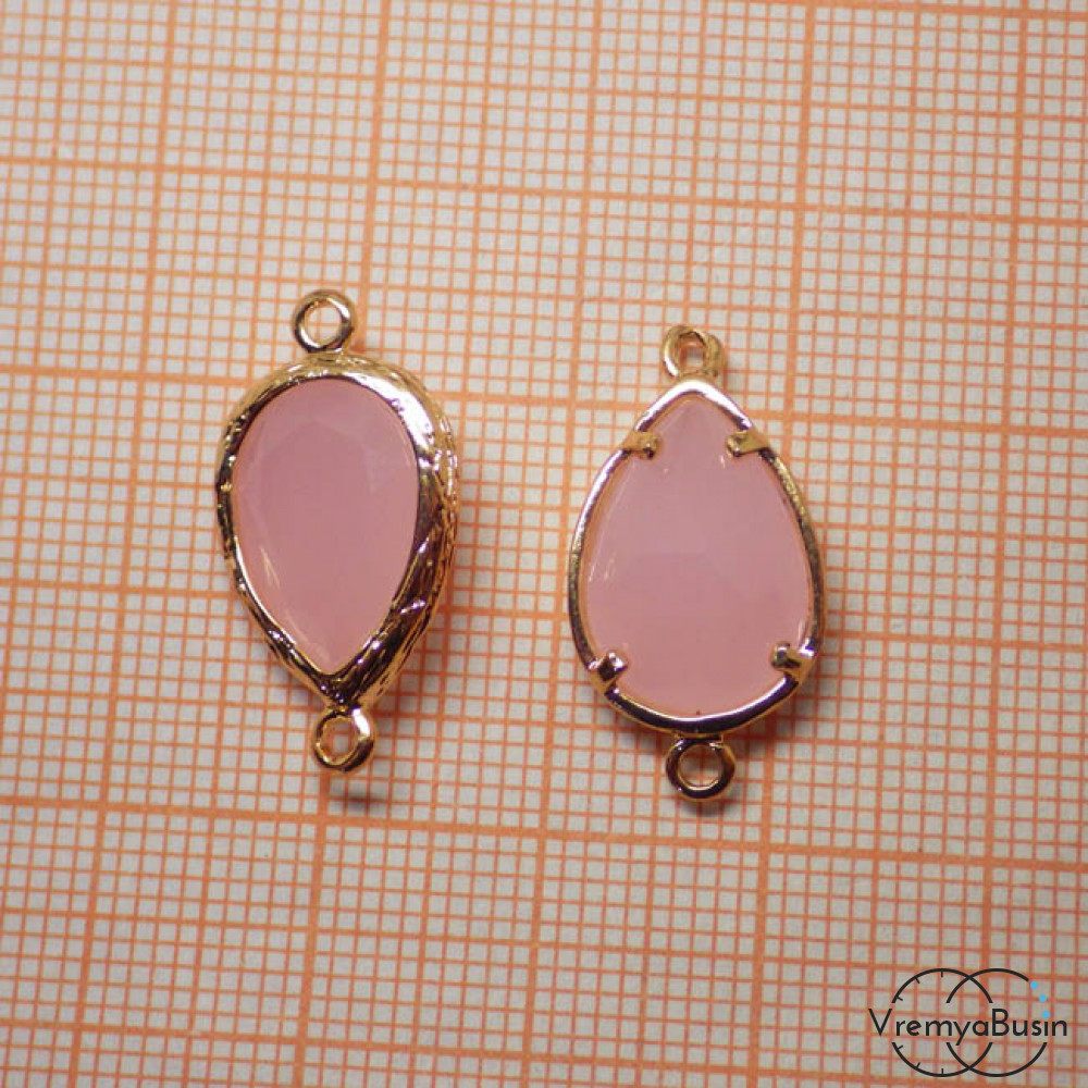 Коннекторы с граненым стеклом, капля 11х16 мм (2 шт.) цв. РОЗОВЫЙ МАТОВЫЙ В ЗОЛОТЕ