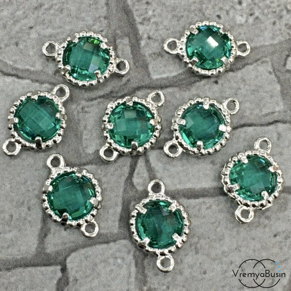 • Коннекторы с граненым стеклом, круг 8х12 мм, цв. ИЗУМРУДНЫЙ В СЕРЕБРЕ (2 шт.)