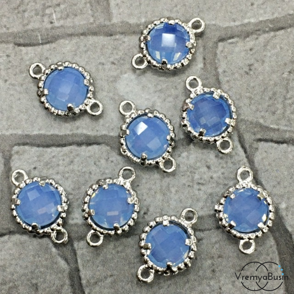 • Коннекторы с граненым стеклом, круг 8х12 мм, цв. ГОЛУБОЙ МАТОВЫЙ В СЕРЕБРЕ (2 шт.)