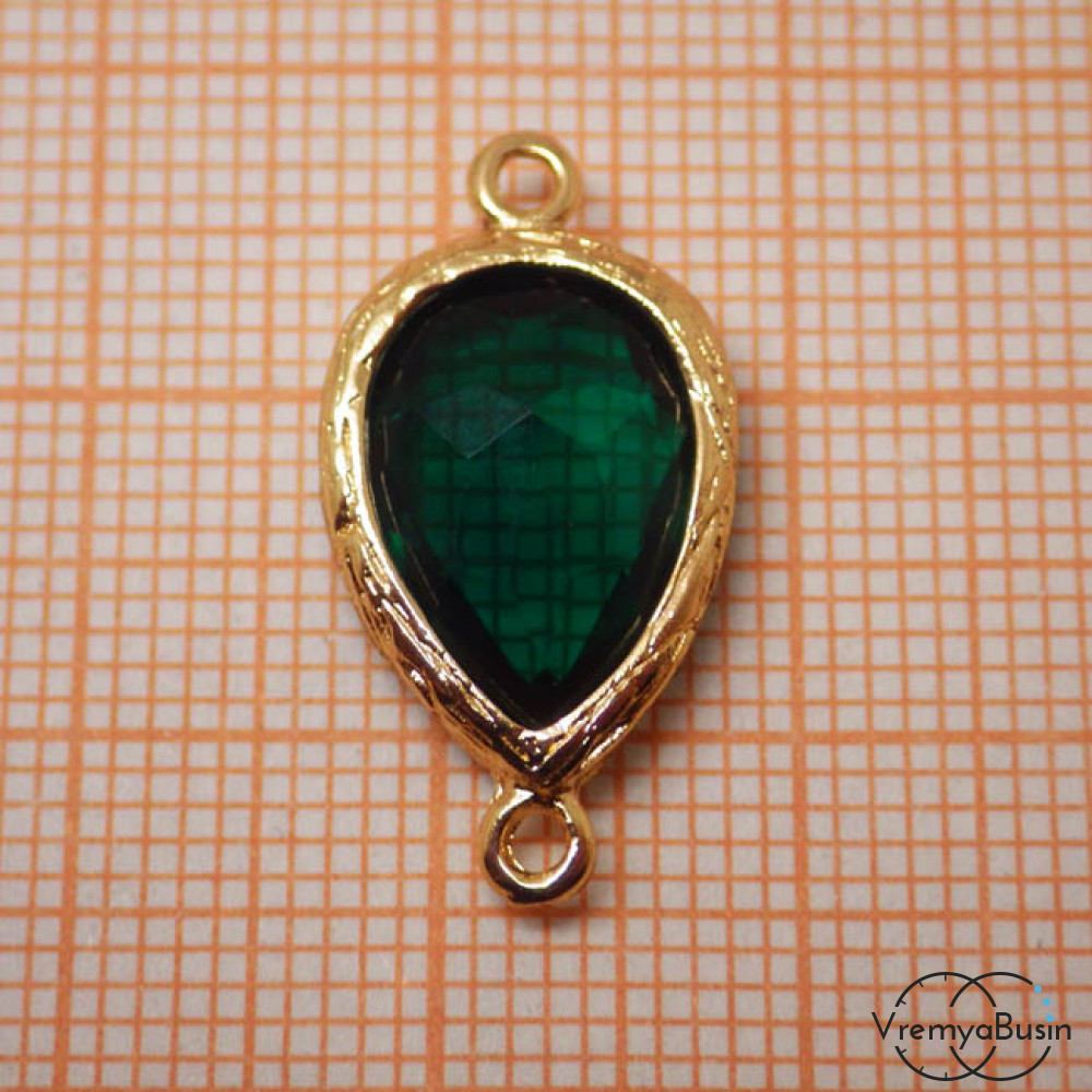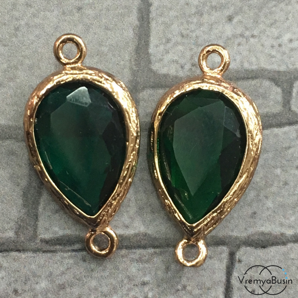 Коннекторы с граненым стеклом, капля 11х16 мм (2 шт.) цв. ИЗУМРУДНЫЙ В ЗОЛОТЕ