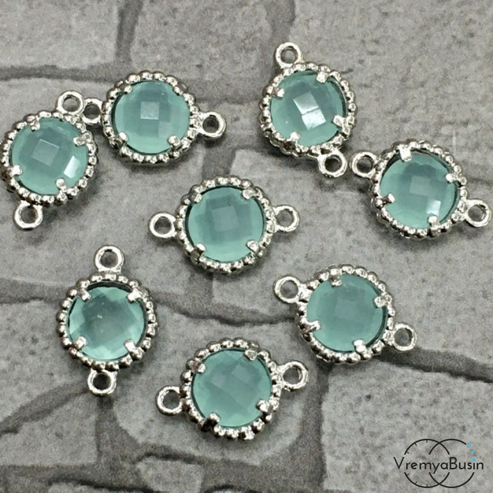 Коннекторы с граненым стеклом, круг 8х12 мм, цв. МЯТНЫЙ МАТОВЫЙ В СЕРЕБРЕ (2 шт.)