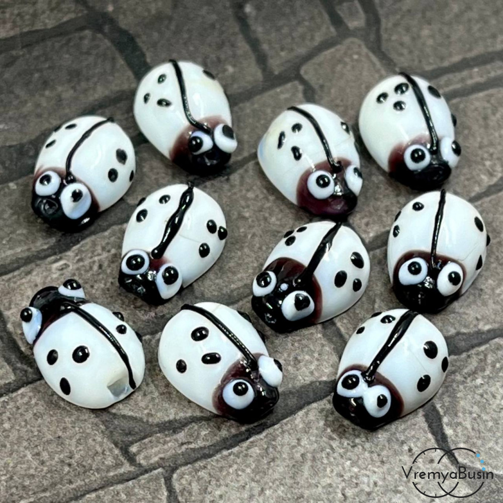 Бусина из стекла "Божья коровка", цв. белый (1 шт.)