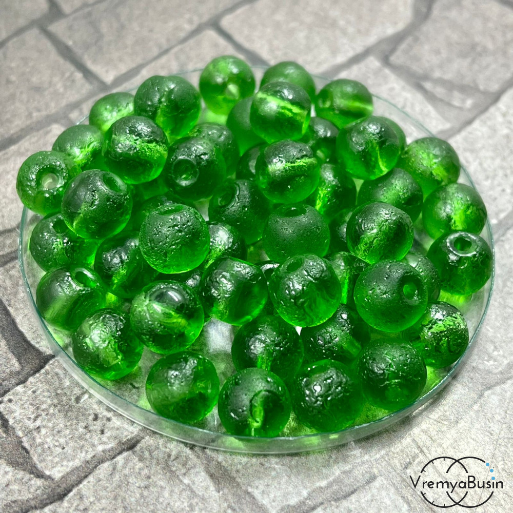 Бусины из стекла "Леденцы", шарик 7х8 мм, цв. зеленый (1 шт.)