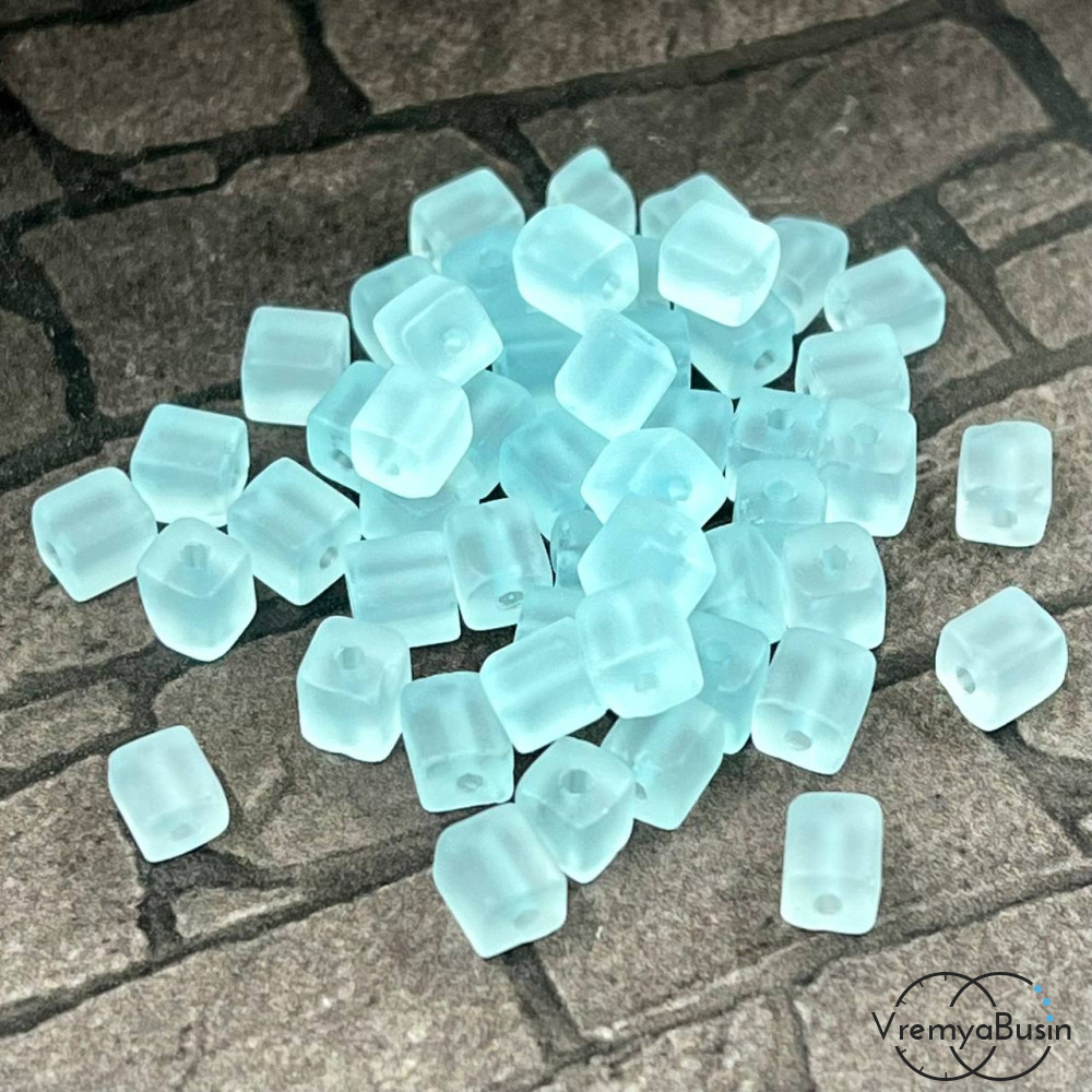 Бусины кубики из матового стекла, 5х5 мм, цв. бирюзовый (упак. 10 шт.)