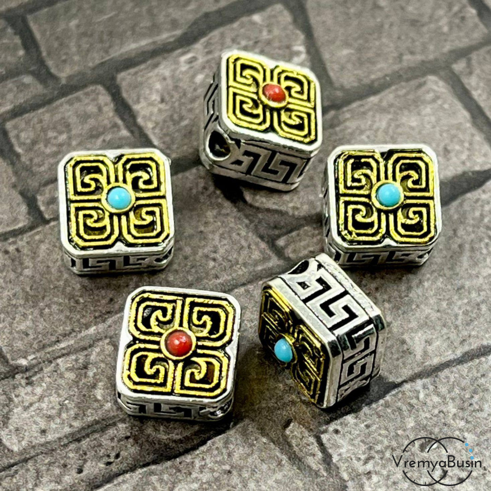 Тибетские бусины металлические, цв. биколор, 12х6 мм (1 шт.)