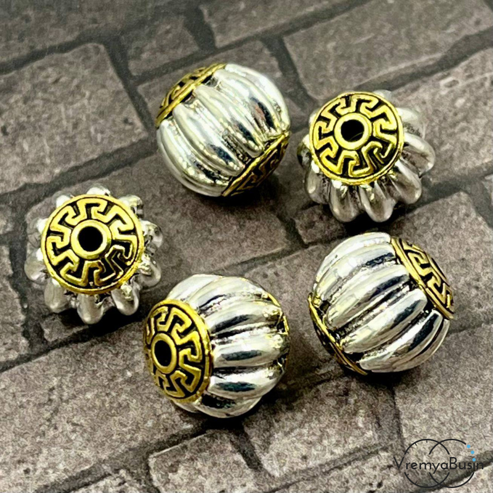 • Тибетские бусины металлические, цв. биколор, 12 мм (1 шт.)