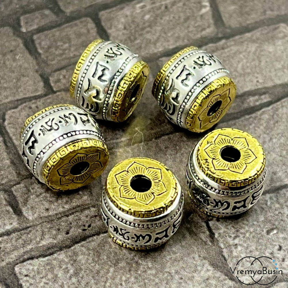Тибетские бусины металлические, цв. биколор, 9х12 мм (1 шт.)