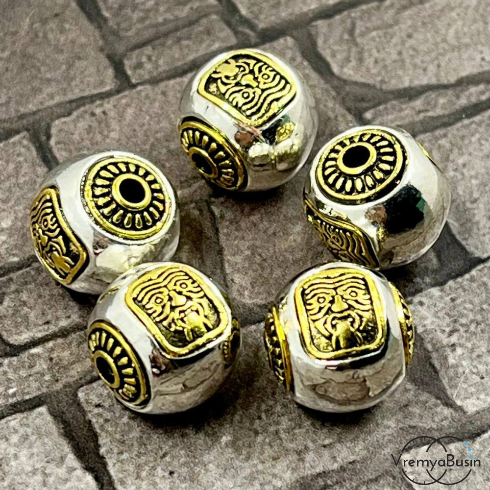 Тибетские бусины металлические, цв. биколор, 12 мм (1 шт.)