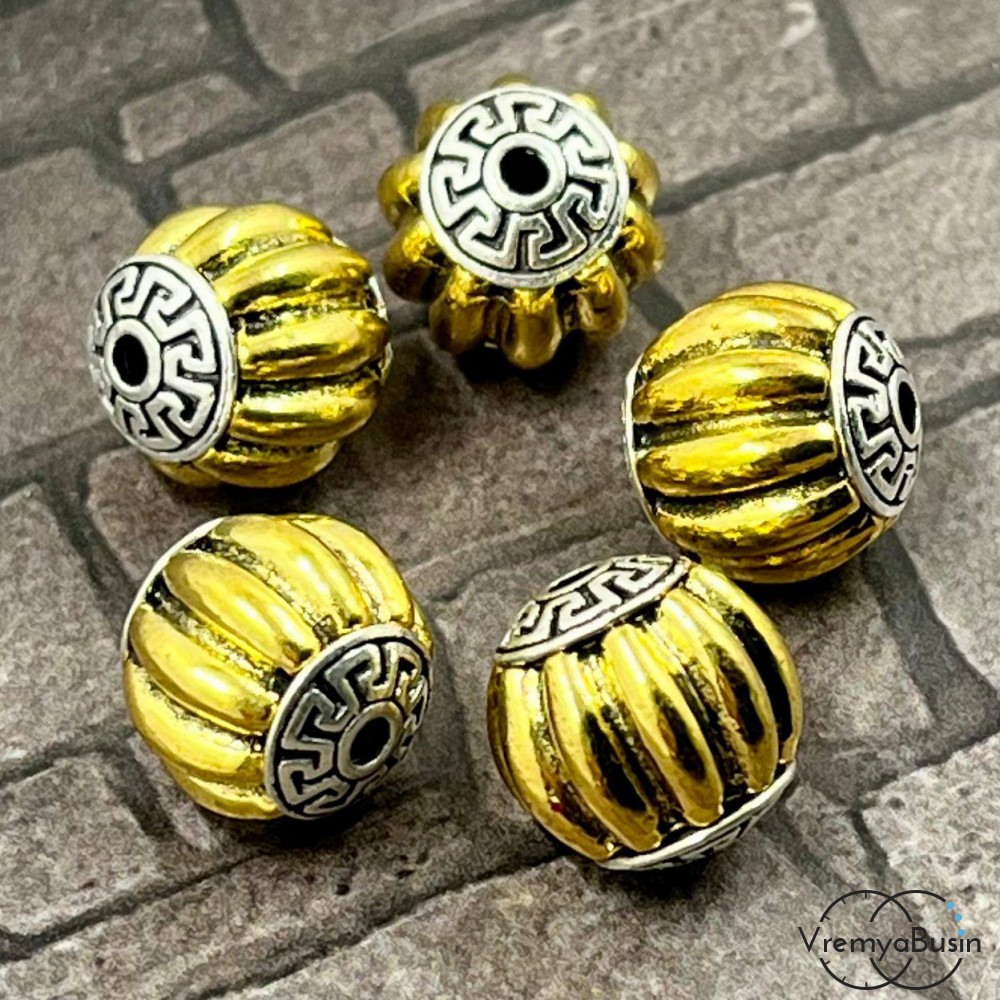 Тибетские бусины металлические, цв. биколор, 12 мм (1 шт.)