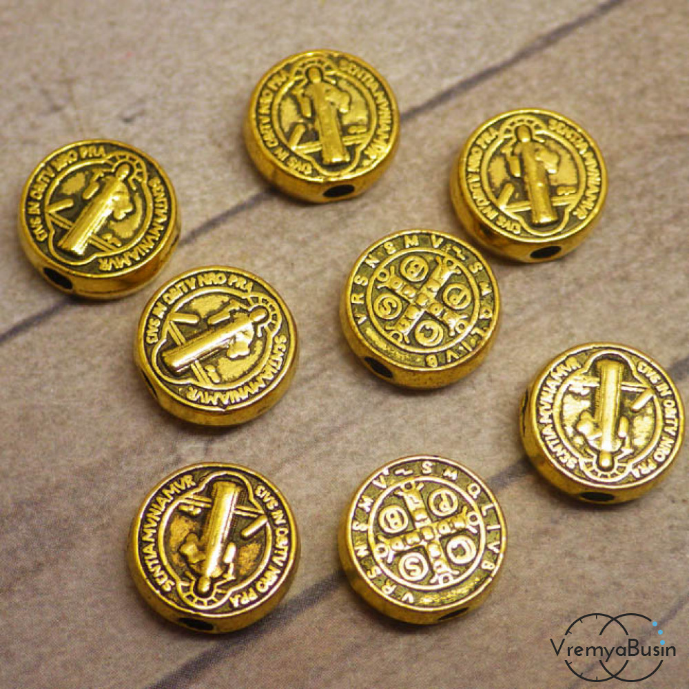 Бусина металлическая "Монетка", цвет золото (1 шт.)