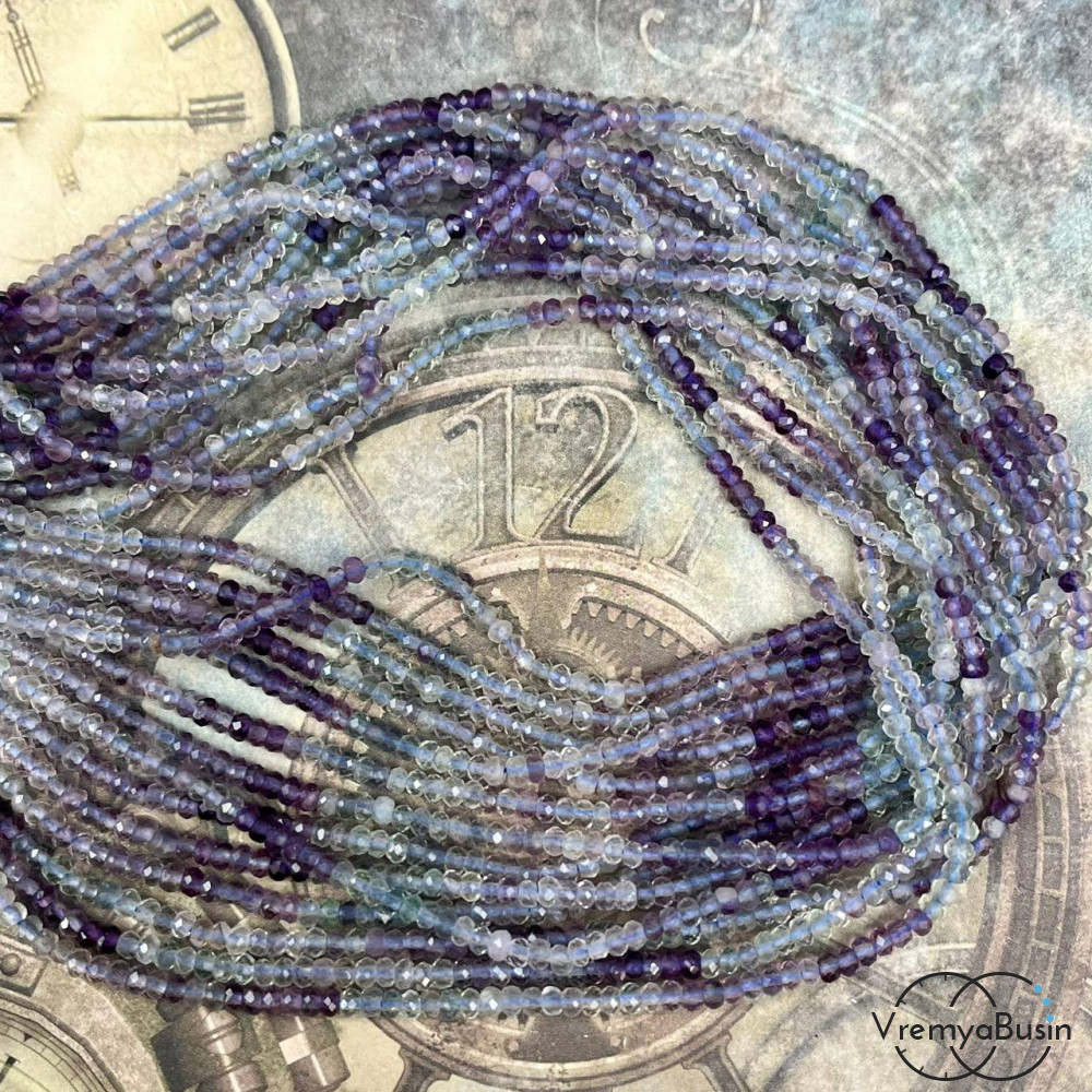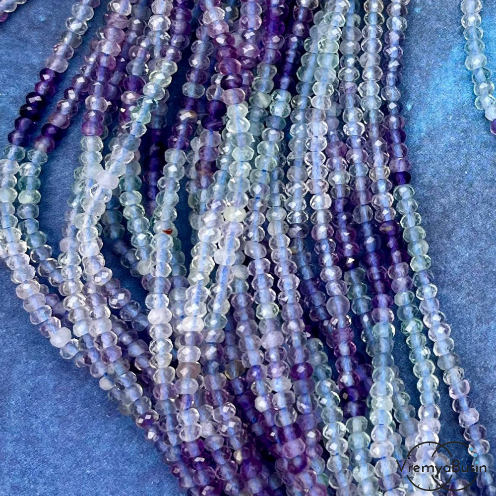 Флюорит натур., рондель с ювелирной огранкой, 2х3 мм (нить, ок. 40 см.)