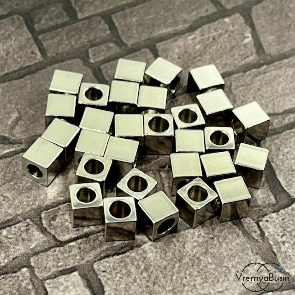 Бусины-разделители из нержавеющей стали, кубик 5х5 мм (упак. 10 шт.)