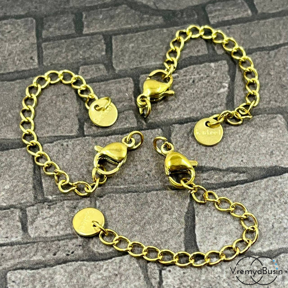 • Карабин из нержавеющей стали, 10х5 мм, с цепочкой, цв. золото (1 шт.)