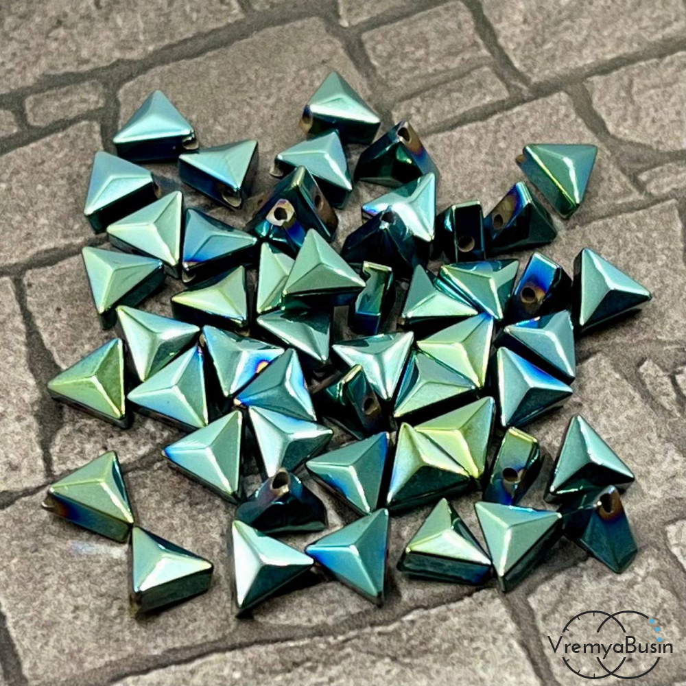 • Гематит, плоский граненый треугольник, 6х7 мм, цв.  зеленый (упак. 10 шт.)