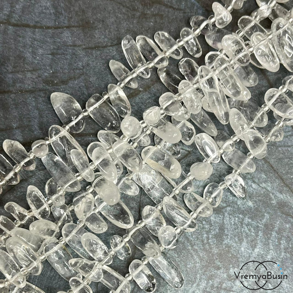 Горный хрусталь, галтовка палочки, ок. 10х15-20 мм (нить, ок. 55 шт.)