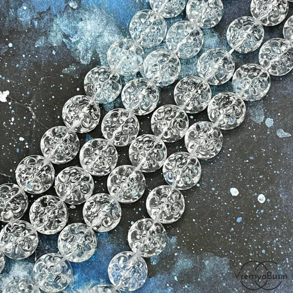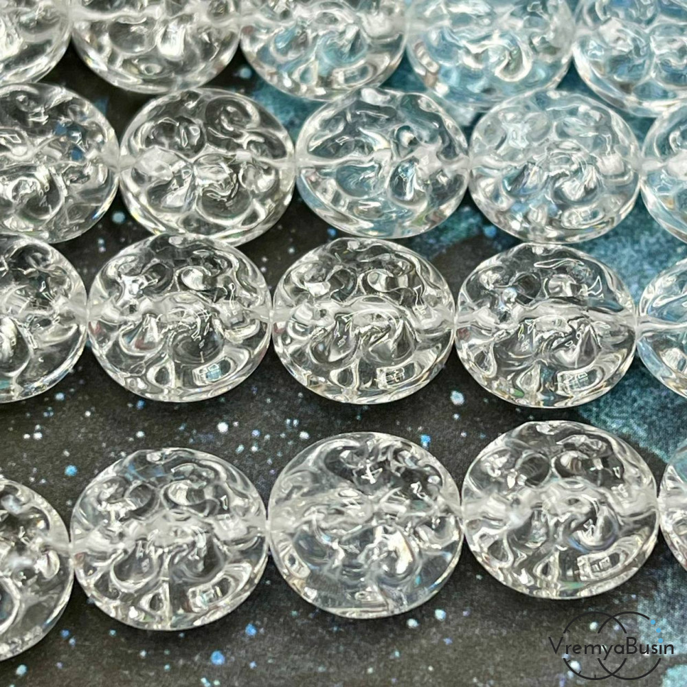 Горный хрусталь имит., бусины таблетки с орнаментом ок. 13х8 мм (1/2 нити, ок. 15 шт.)