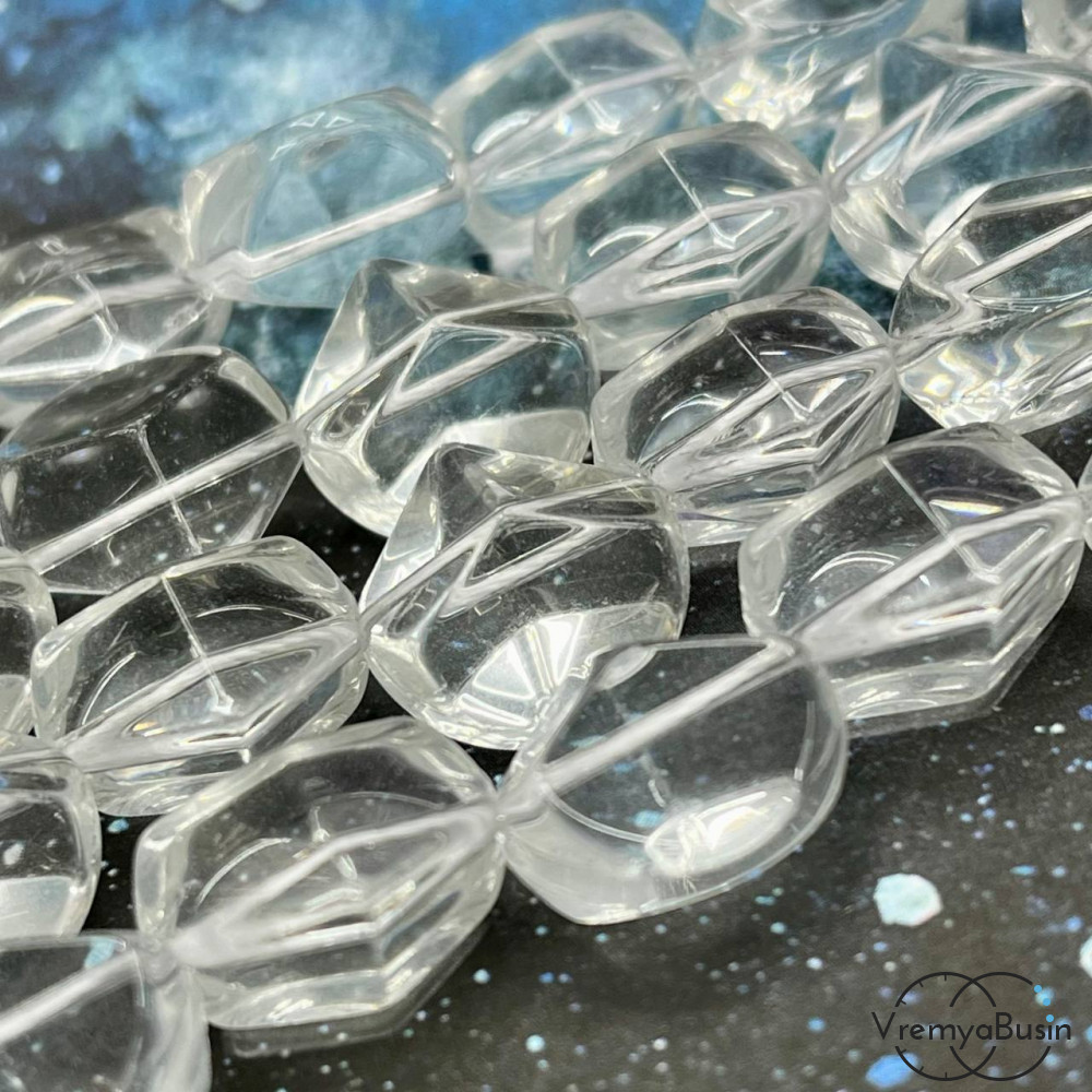 Горный хрусталь имит., бусины капли с гранями ок. 16 мм (1/2 нити, ок. 12 шт.)