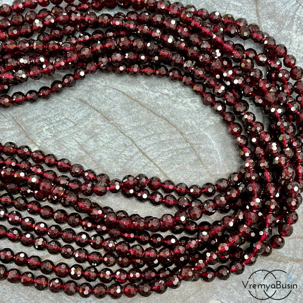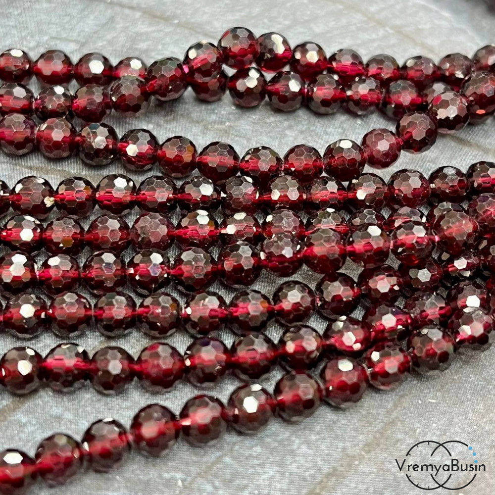 Гранат, шарик 5 мм с ювелирной огранкой (1/2 нити, ок. 35 шт.)