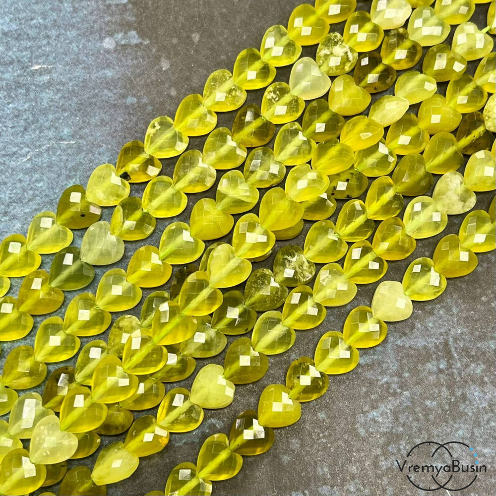 • Хризолит, сердце граненое ок. 8х8х4 мм (нить, ок. 24 шт.)