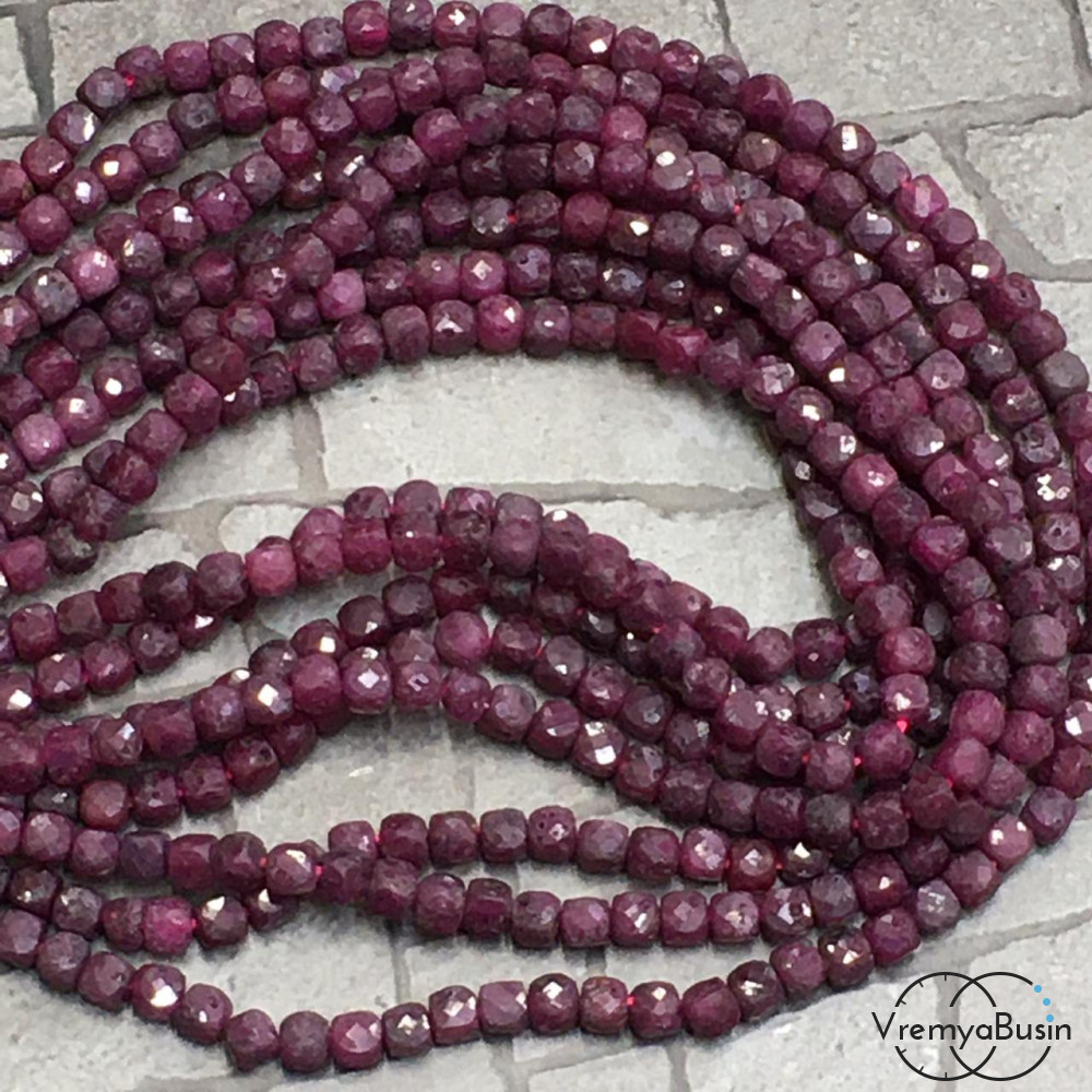 Корунд, кубик с ювелирной огранкой, 4х4 мм (1/2 нити, ок. 45 шт.)