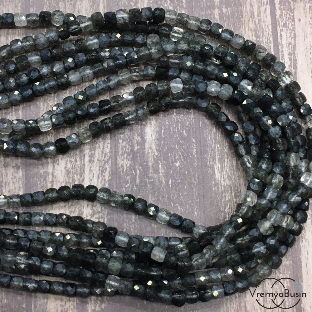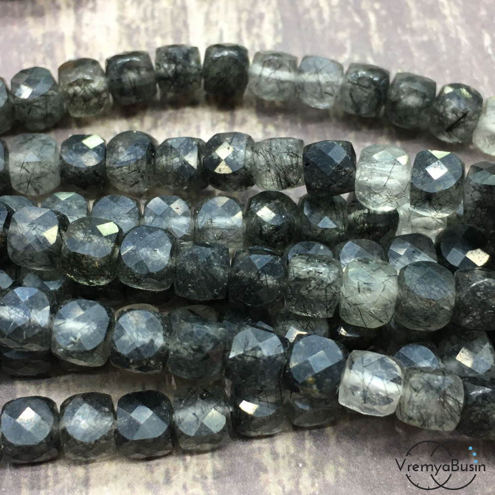 Рутиловый кварц, кубик с ювелирной огранкой, 5х5 мм (1/2 нити, ок. 37 шт.)