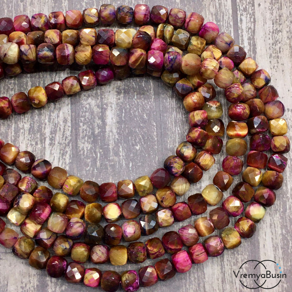 • Тигровый глаз натур., тонир. цв. красный, кубик с ювелирной огранкой,     7х7  мм (1/2 нити, ок.    26   шт.)