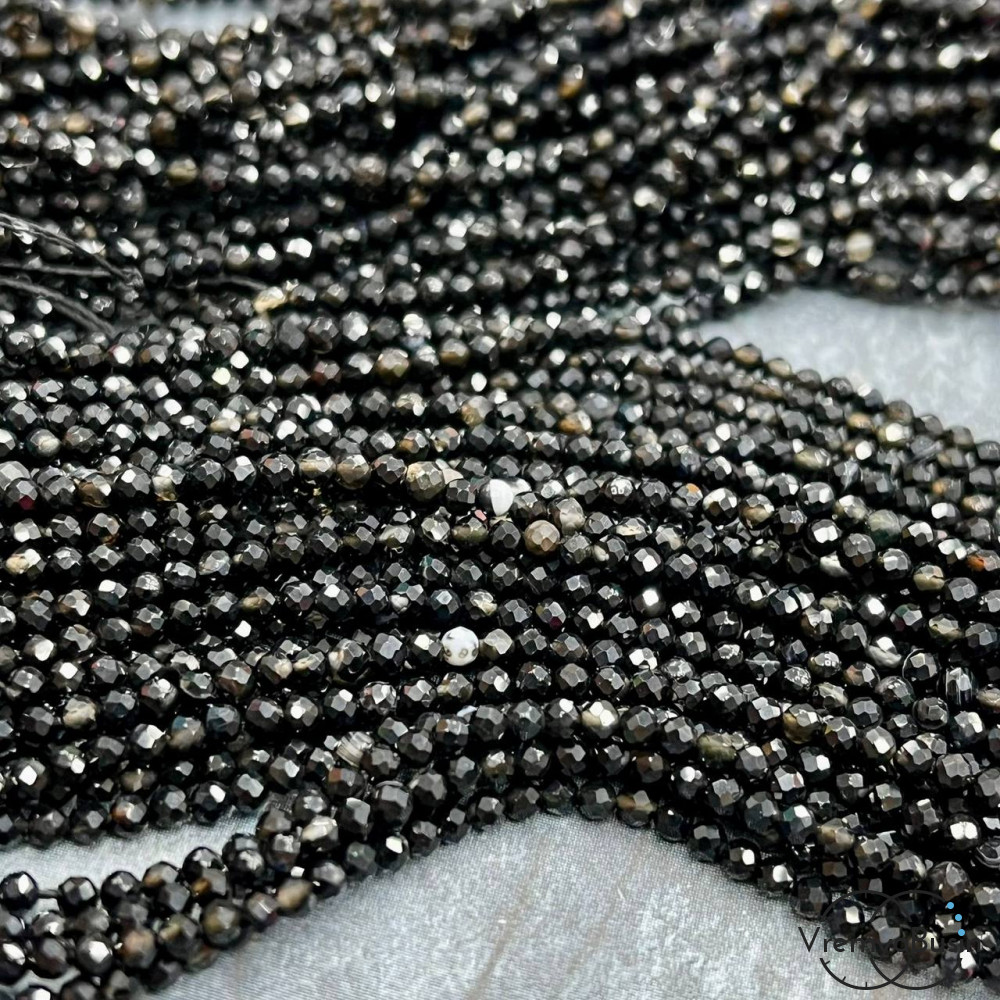 Агат черный, мелкие бусины с микроогранкой, шарик 2 мм (нить, ок. 40 см.)