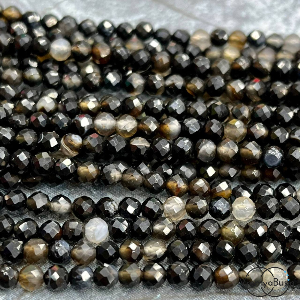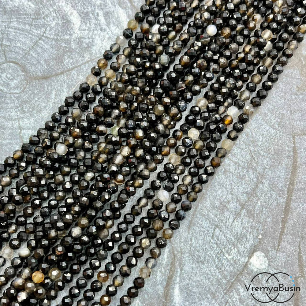 Агат черный, мелкие бусины с микроогранкой, шарик 4 мм (нить, ок. 40 см.)