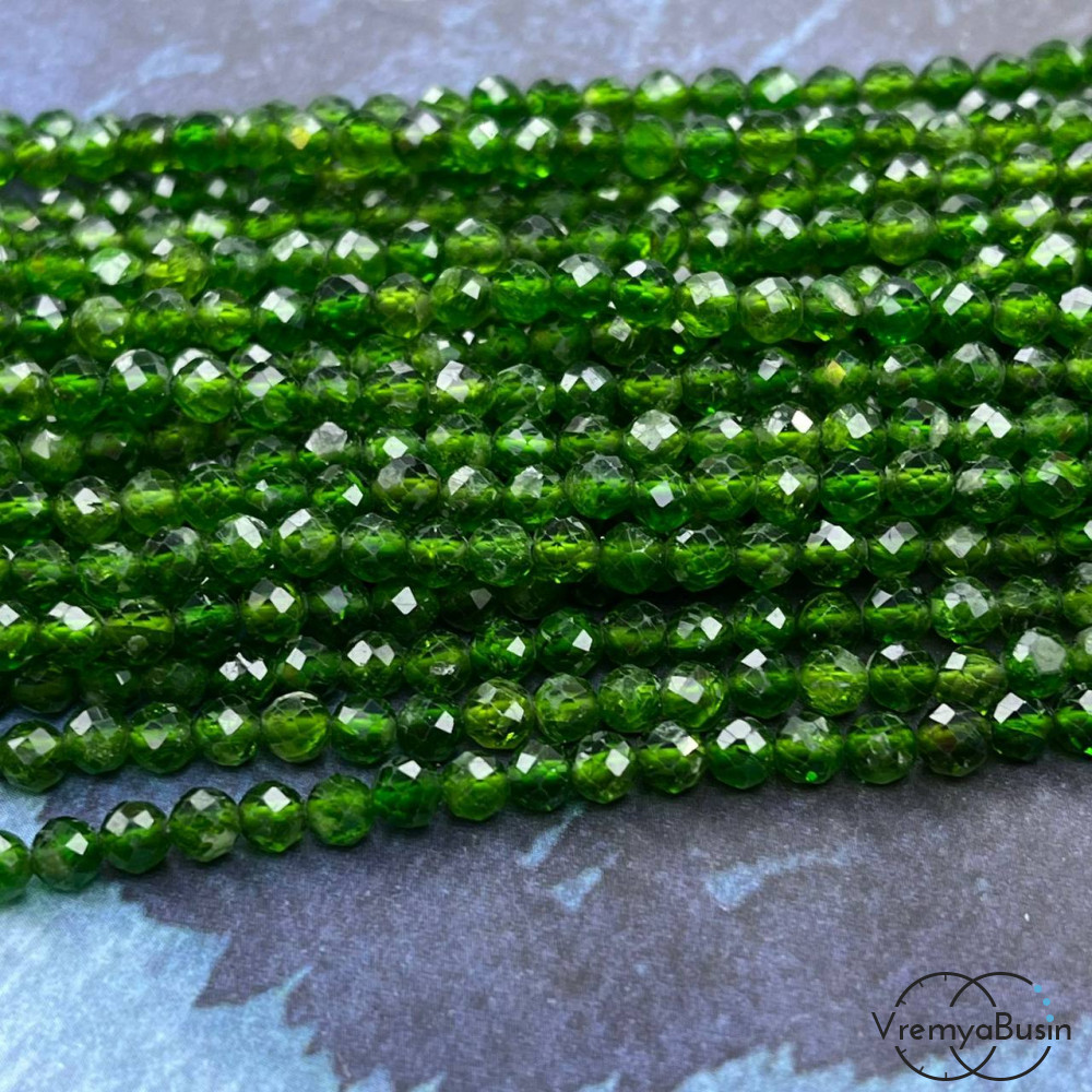 Хромдиопсид, мелкие бусины с микроогранкой, шарик 4 мм (нить, ок. 40 см.)