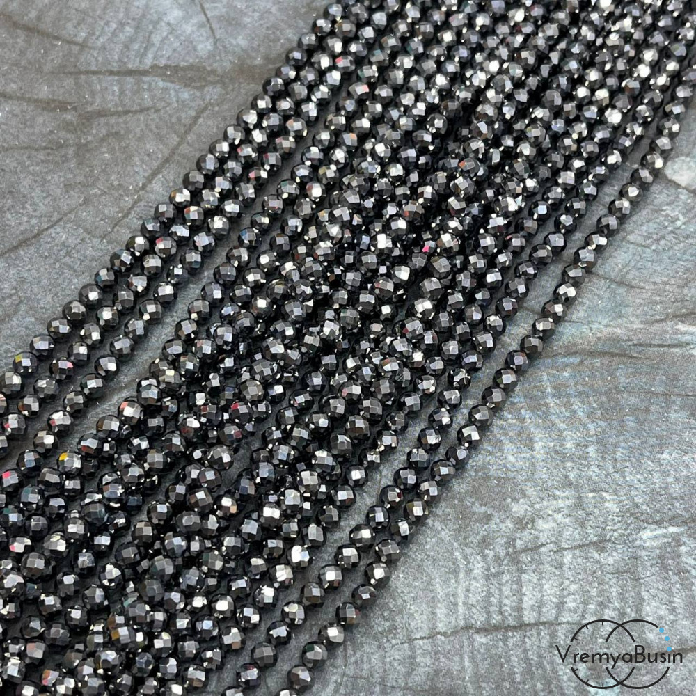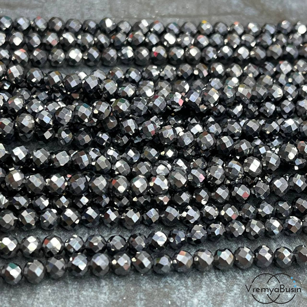 Марказит, мелкие бусины с микроогранкой, шарик 4 мм (нить, ок. 40 см.)