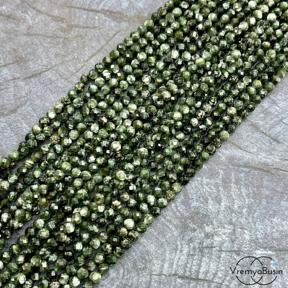 Серафинит, мелкие бусины с микроогранкой, шарик 4 мм (нить, ок. 40 см.)