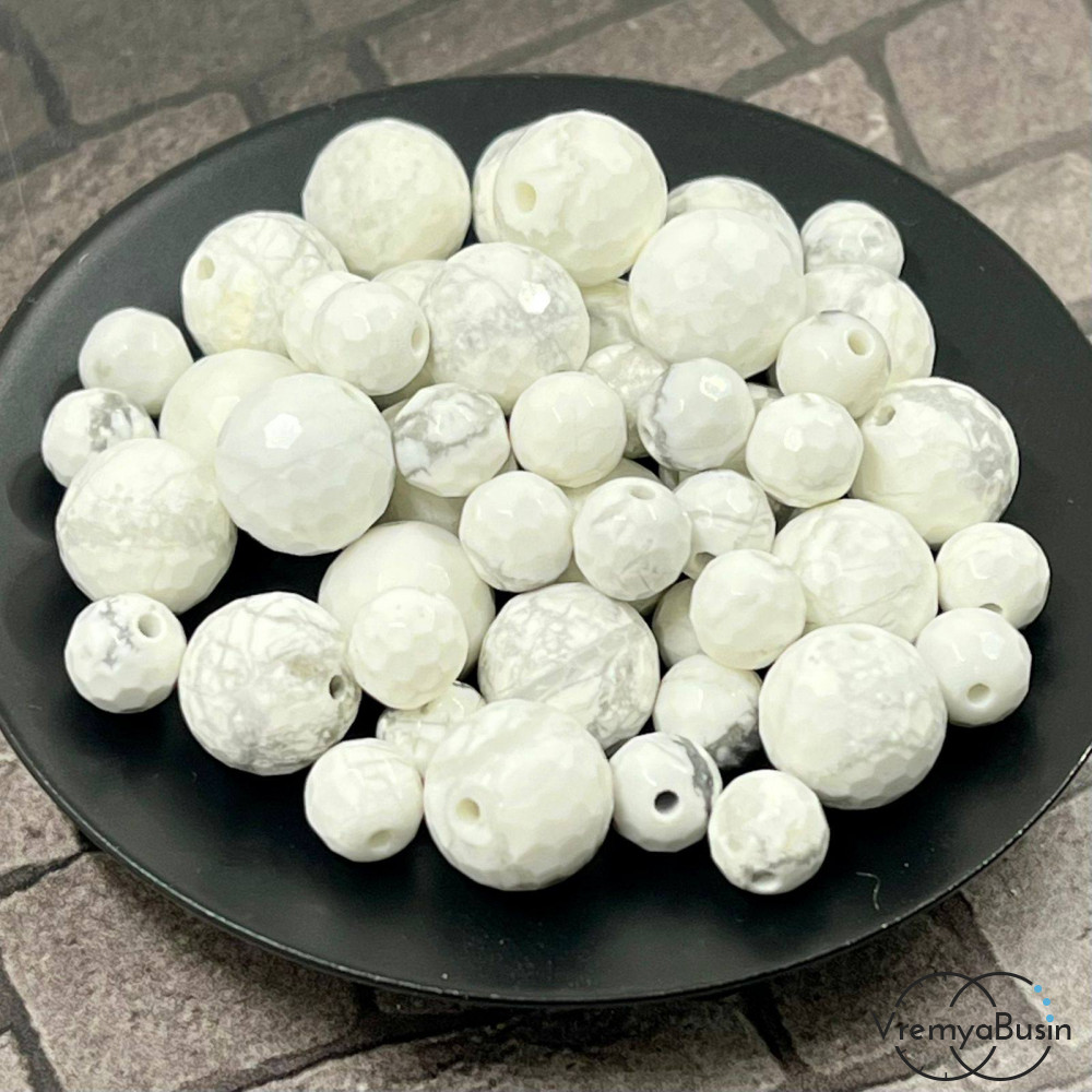 Кахолонг белый граненый шарик 4-6-8-10-12 мм (1 шт.)