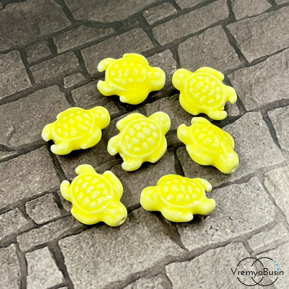 Бусина керамическая "Черепаха", 14х18 мм, цв. лимонный (1 шт.)