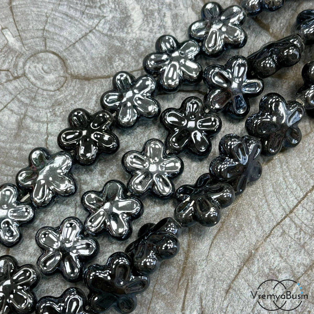 • Бусина керамическая "Цветочек", 6х18 мм, цв. ЧЕРНЫЙ (1/2 нити, ок. 10 шт.)