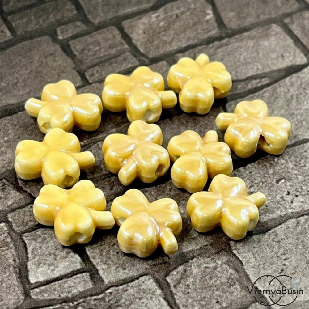 Бусина керамическая "Клевер", 10х13х5 мм, цв. БЕЖЕВЫЙ (1 шт.)