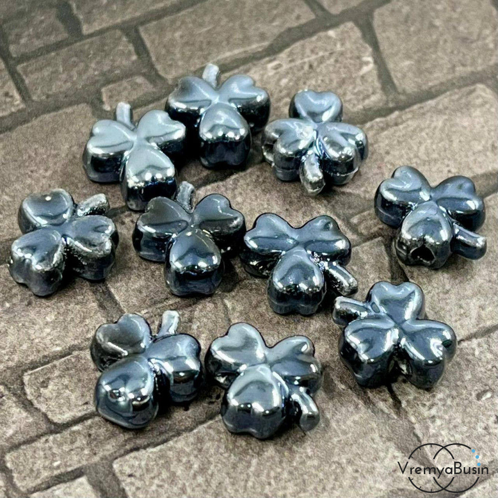 Бусина керамическая "Клевер", 10х13х5 мм, цв. ЧЕРНЫЙ (1 шт.)