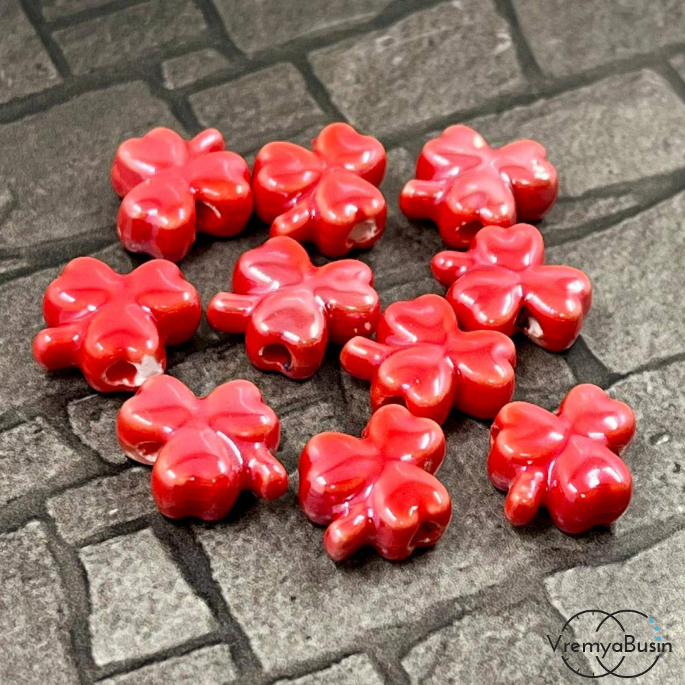 Бусина керамическая "Клевер", 10х13х5 мм, цв. КРАСНЫЙ (1 шт.)