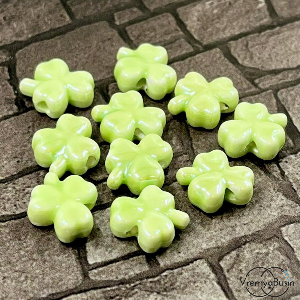 Бусина керамическая "Клевер", 10х13х5 мм, цв. САЛАТОВЫЙ СВЕТЛЫЙ (1 шт.)