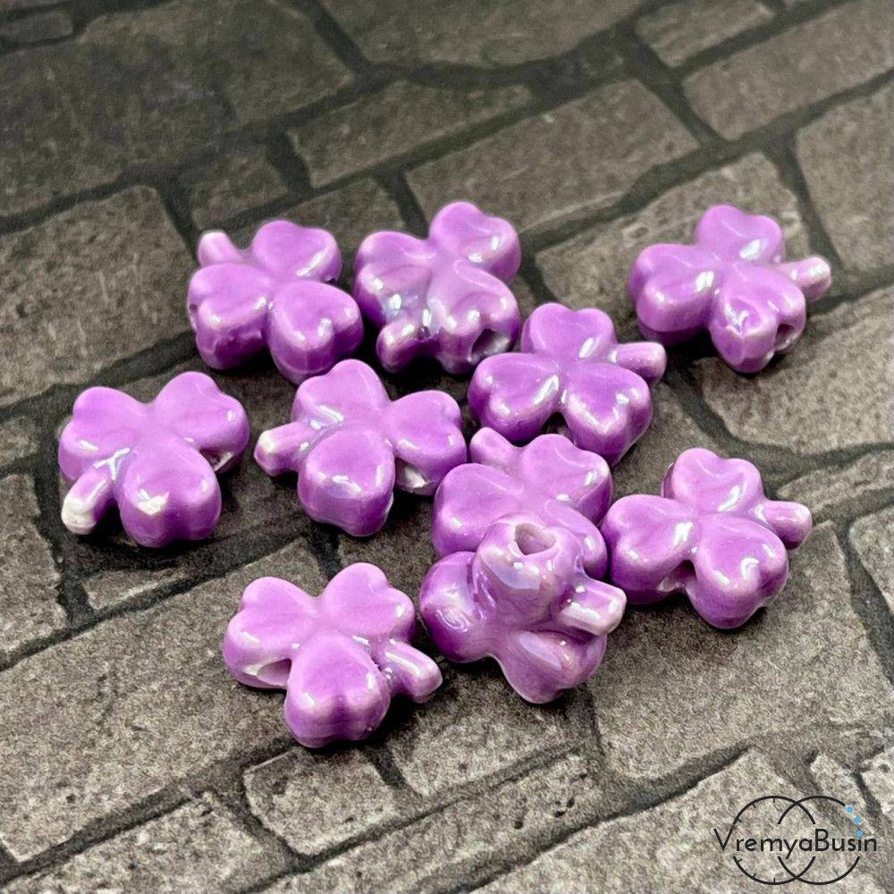 Бусина керамическая "Клевер", 10х13х5 мм, цв. СИРЕНЕВЫЙ (1 шт.)