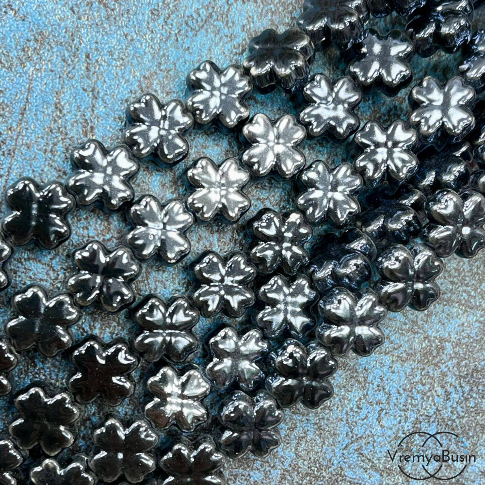 Бусина керамическая "Клевер", 12х6 мм, цв. ЧЕРНЫЙ (нить, ок. 30 шт.)