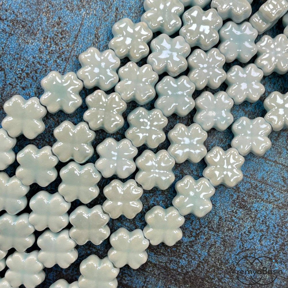 • Бусина керамическая "Клевер", 12х6 мм, цв. ГОЛУБОЙ (нить, ок. 30 шт.)