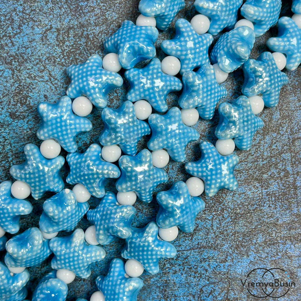Бусина керамическая "Морская звезда", 18х10 мм, цв. бирюзовый (нить, ок. 22 шт.)