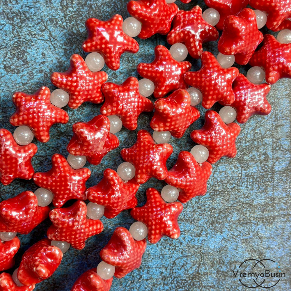Бусина керамическая "Морская звезда", 18х10 мм, цв. красный (нить, ок. 22 шт.)