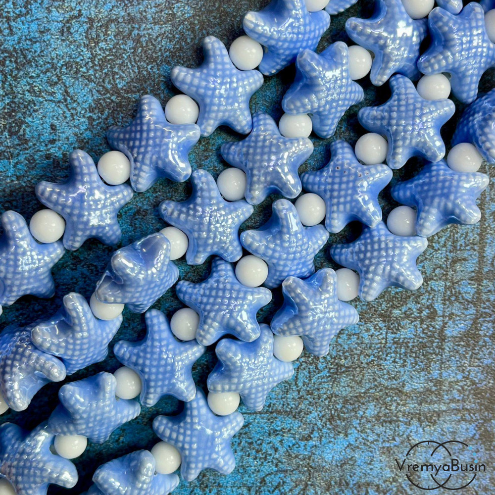 Бусина керамическая "Морская звезда", 18х10 мм, цв. голубой (нить, ок. 22 шт.)