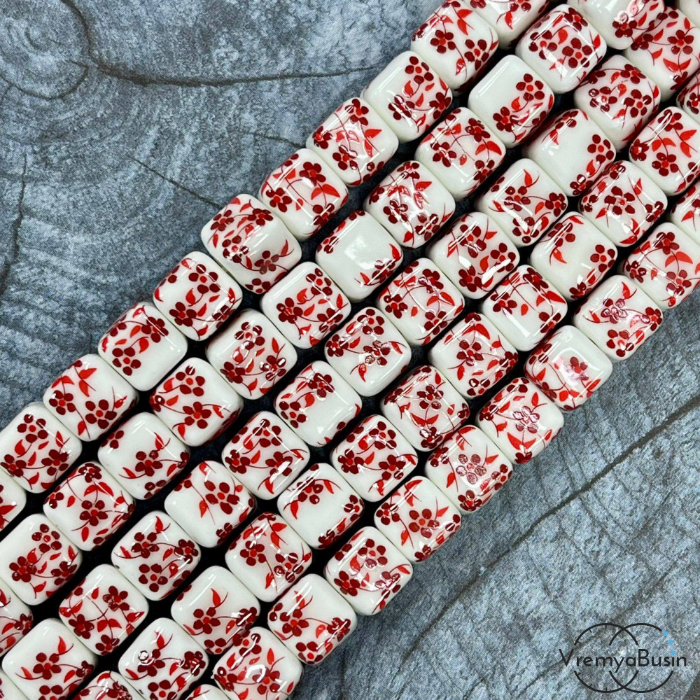 Бусина керамическая с рисунком, кубик 8 мм (нить, ок. 42 шт.)