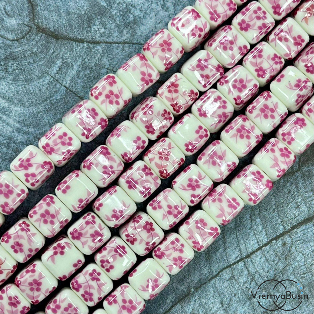 Бусина керамическая с рисунком, кубик 8 мм (нить, ок. 42 шт.)